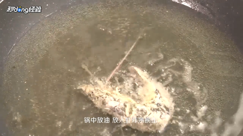 锅中放油,放入虾炸熟捞出。