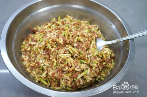 1. 西葫芦汁水丰富,所以肉馅中不要再额外加水调馅,经过搅拌后,西葫芦汁完全被羊肉所吸收,营养不流失,干稀度恰到好处。
