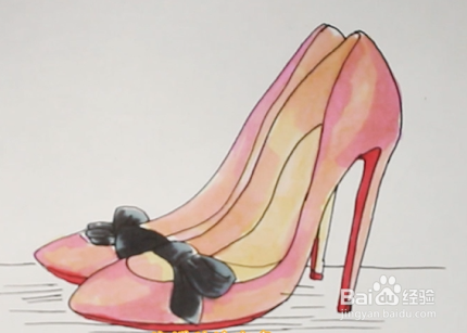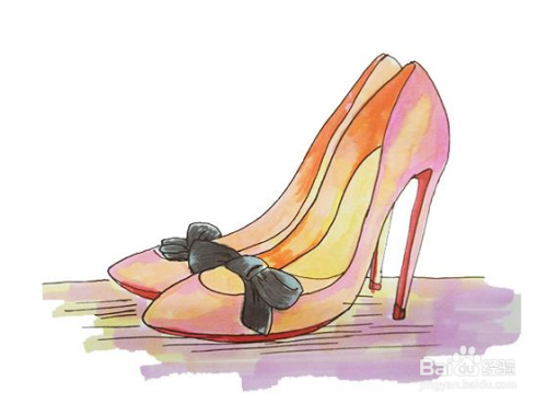 首先画出鞋的轮廓,再画出蝴蝶结,接着把鞋跟画出来,然后画出高跟鞋的鞋底;