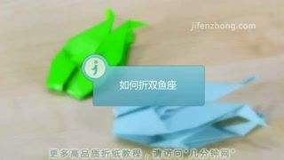 9最后把小鱼的嘴巴捏弯。栩栩如生的双鱼座就完成了。提示:折第二条鱼的时候,可以将头尾倒置,可得到向相反方向游动的两条鱼。
