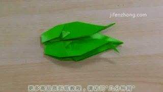 6左边的角上层向内翻折,形成鱼儿的尾鳍。这样一条小鱼就完成了。