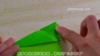 2先折第一条鱼。将上半部分纸对折,然后将上面的一个角沿整张纸的中线向上翻折,留下折痕,打开,再沿新的折痕翻折一次,这样就得到两条折痕。