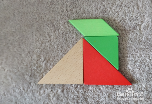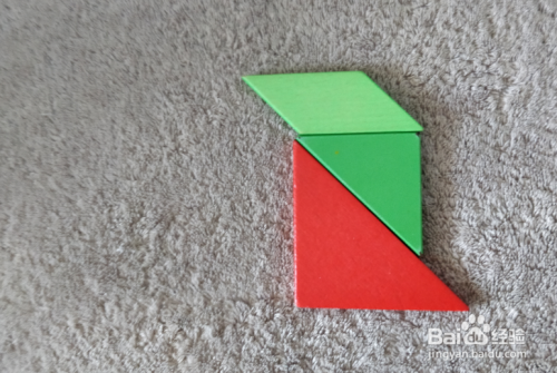 放上绿色三角形,下面放上红色三角形挨着,如图。