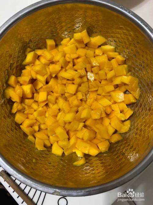 将芒果切成丁,喜欢别的水果的换其它