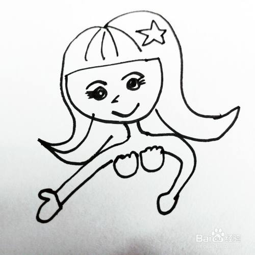 第三步,我们来画卡通美人鱼的身体,两边的双手和胳膊。