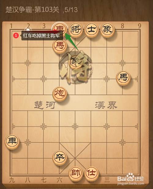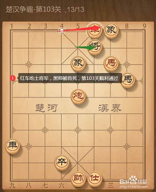 黑帅在红方的一招马拉车下毙命当场,这一场红黑双方的较量以红方取胜,画上了句号。第103关顺利通过。