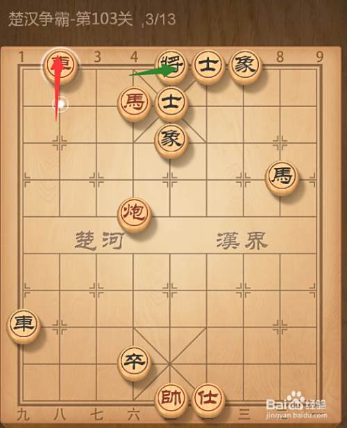 第103关,通过共需13步,此一关难度较大,红方已经控制住了红帅,只要黑车一落底线将军,红方就输了,所以红方没有喘息的机会,只能一步接一步的将军,小伙伴们请跟着我下边的图上步骤走棋。