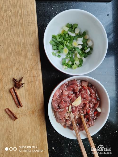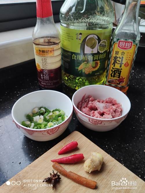 准备八角,桂皮!2,鹅肉中盐,老抽,料酒(此处可另加生粉抓匀)3,放食用油(我放的橄榄调和油),此处很关键,油要放足够,且放味道小的油???4,辣椒粒,蒜粒,姜片搅拌均匀,放置10分钟左右。