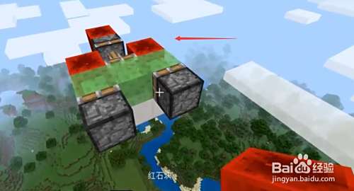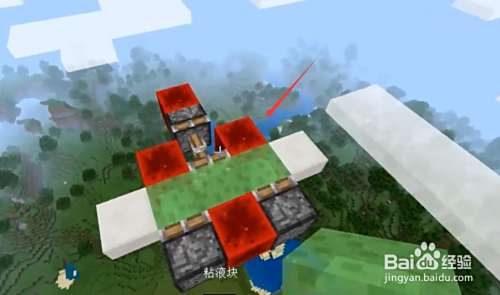在方块的上面放上两个粘性方块,放上两个史莱姆方块,最后在前面旁边放上红石方块。这样这个红石飞机就做好了。