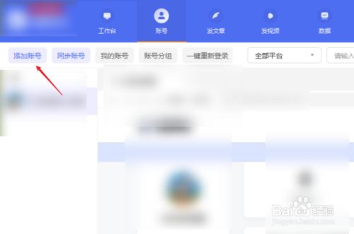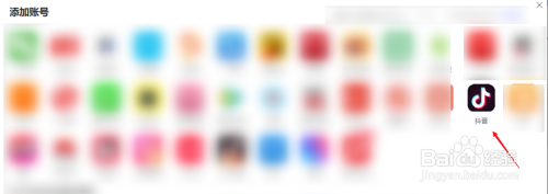以初次进入为例,点击“添加账号”。会出现各大自媒体平台列表。这里出现的自媒体平台都可以用该应用进行管理的。选择要管理的平台,如抖音。