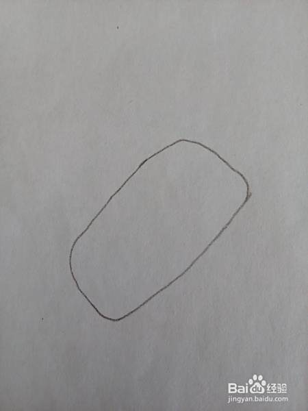 首先,我们用色的铅笔在纸上画一个近似长方形的图形来。然后,我们在它的里面画出三个小长方形来。如图;
