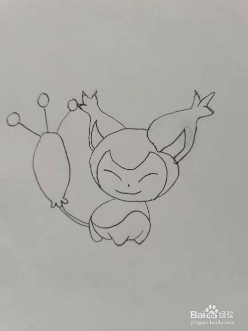 第三步,我们画向尾喵的身体和四肢。