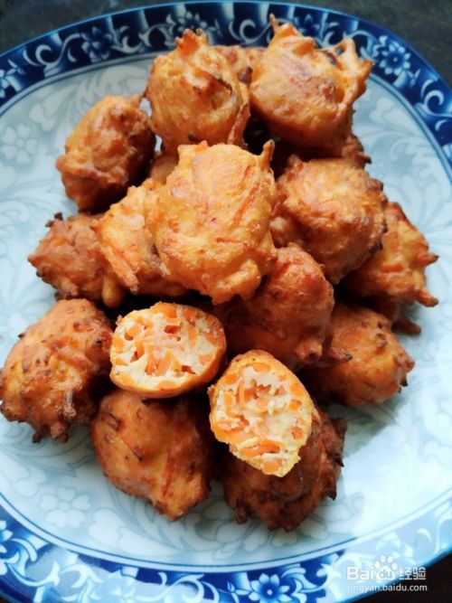 锅入油烧热,将胡萝卜糊团成丸子,先大火定型,中小火炸熟(轻按微微有弹性)