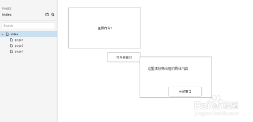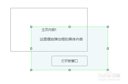 在空白页面上从元件库中拉出一个矩形框和一个按钮,矩形框是为了展示主页的内容,按钮是为了点击后弹出对话框的效果,界面设计如下截图,使用过程中根据自己项目的实际需求摆放具体内容。