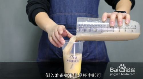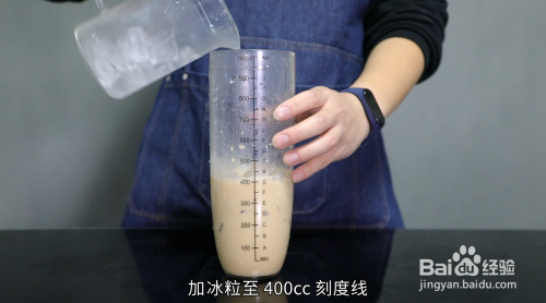 雪克杯中加入正山小种奶茶汤 250cc,肇泉冰糖 25cc(或肇泉特调蔗糖 20cc),加冰粒至 400cc 刻度线,雪克均匀。