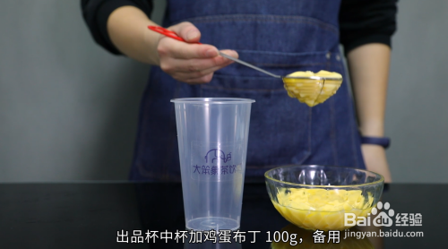 出品杯中杯加鸡蛋布丁 100g,备用。
