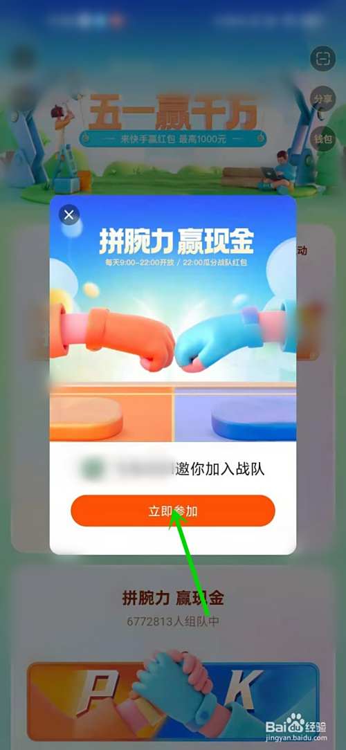 下面将介绍快手拼腕力赢现金活动如何加入好友的队伍。