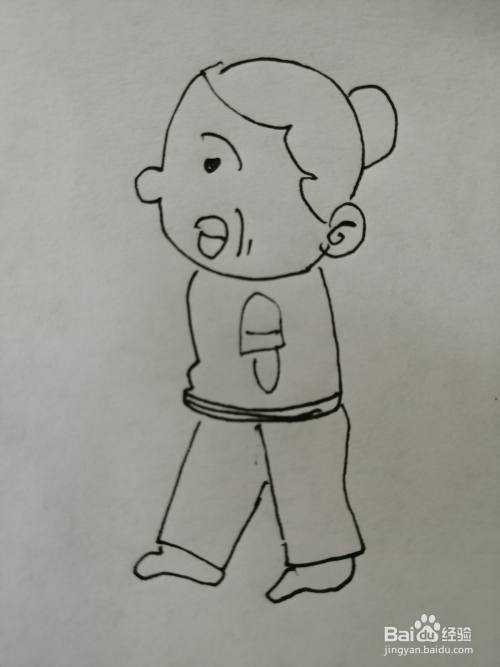 第七步,最后把慈祥的老奶奶的两只鞋子画出来。慈祥的看奶奶就画好了。