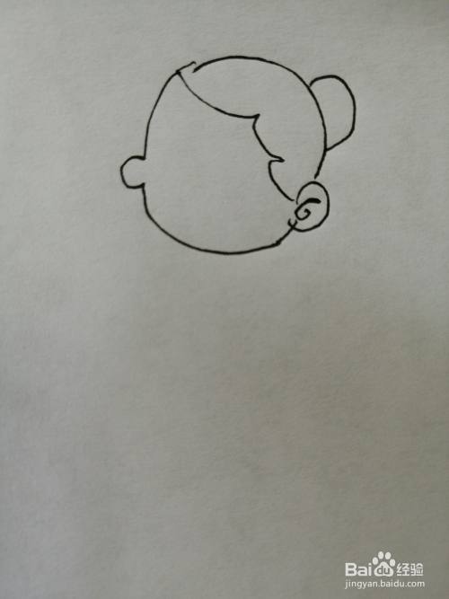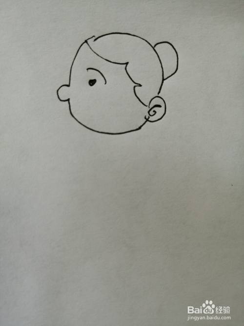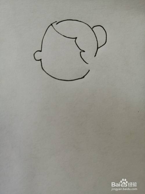 第一步,我们先把慈祥的老奶奶的头部轮廓画出来,注意老奶奶头发发髻的画法。