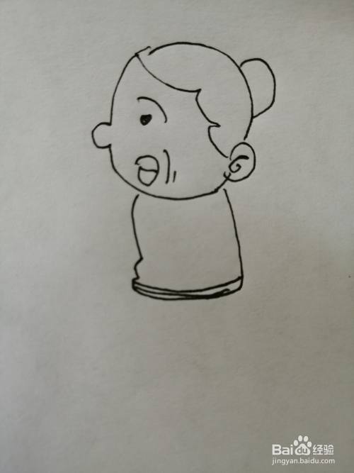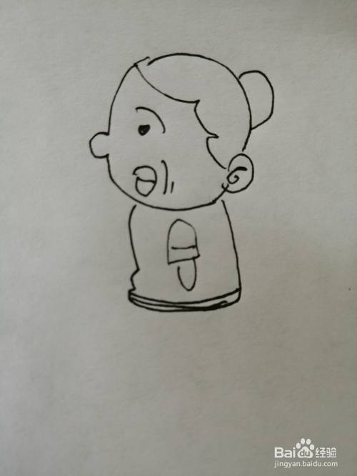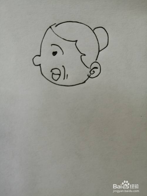 第四步,然后在慈祥的老奶奶的眼睛下面画出小嘴巴,注意老奶奶嘴巴细节的画法。