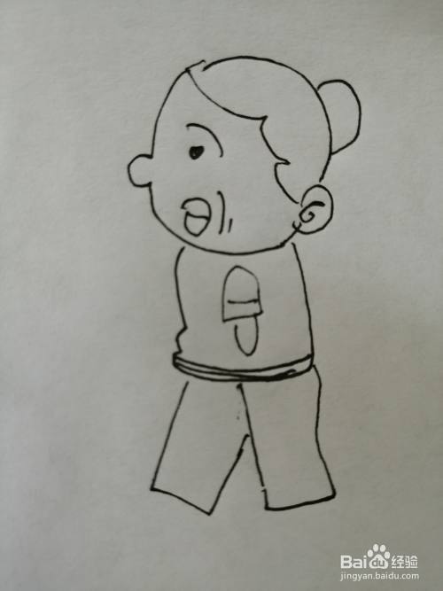 第六步,然后继续画出慈祥的老奶奶的裤腿,注意裤腿细节的画法。