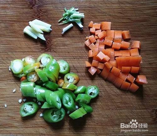 将备好的葱姜、杭椒和胡萝卜洗净,切好备用