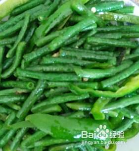 第三步:翻炒到豆角变软,放盐放调料,放剁椒,出锅。