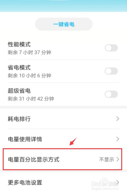 下一步,点击电量百分比显示方式;