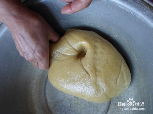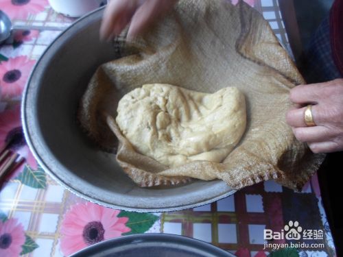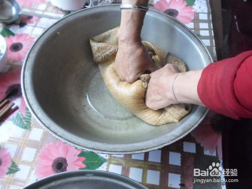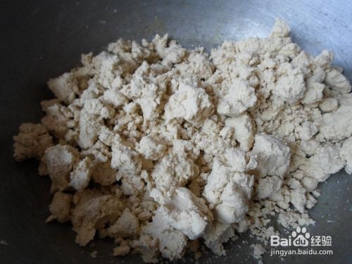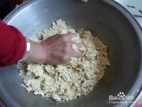 把糕面放在和面盆里,一边往里慢慢地倒水,一边用手用力揉面,要注意必须用些力气,否则蒸出来的糕就没筋道,直到把糕面和均匀了,建议和的硬些,和成一小块一小块的面团就行了,不要和成一大块面团。