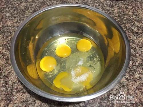 将全蛋打发,体积变成大约两倍大,纹路不会轻易消失就行。