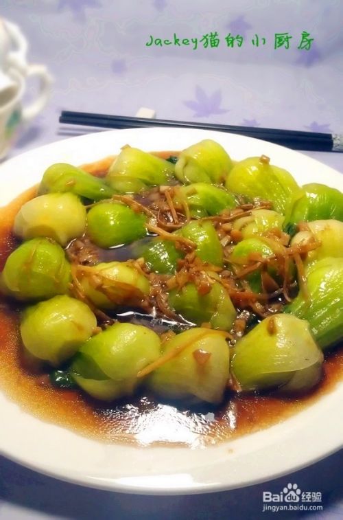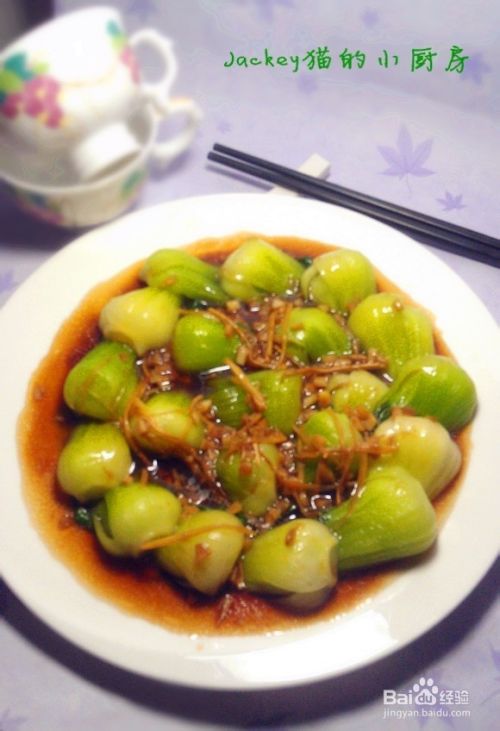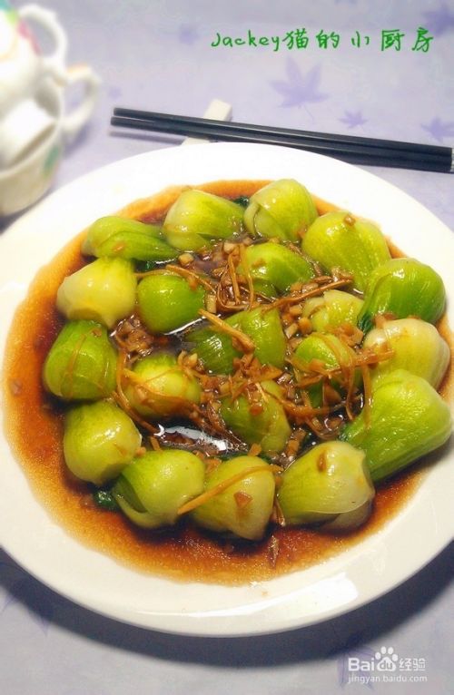 最后把烧好的酱汁浇在小棠菜上面,就可以上桌喽~