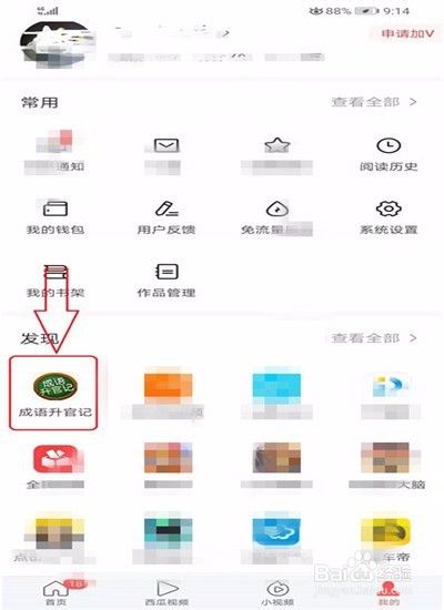 登录自己的今日头条,今日个人主页,在【发现】点【成语升官记】。