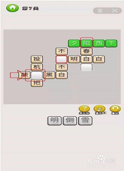 如果填写之后显示的红颜色,表示错误了,可以在错误的字上再点一下,就会撤销填错的字,依然是空白的。正确的都是绿色显示。如果不会红色标出的空白,可以把红色随意移动,在任意空白方框内点一下,红色就移动了。