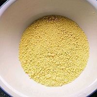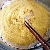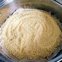 1. 黄米面粉放入盆中,分次淋入水,用手不停搓揉成半湿颗粒状,静置半小时,备用。