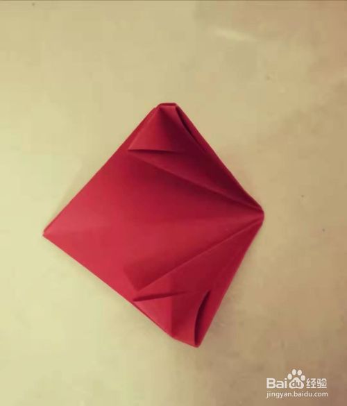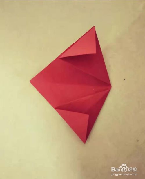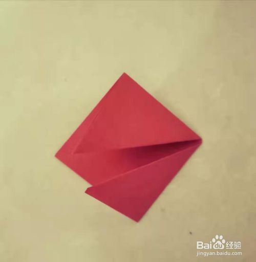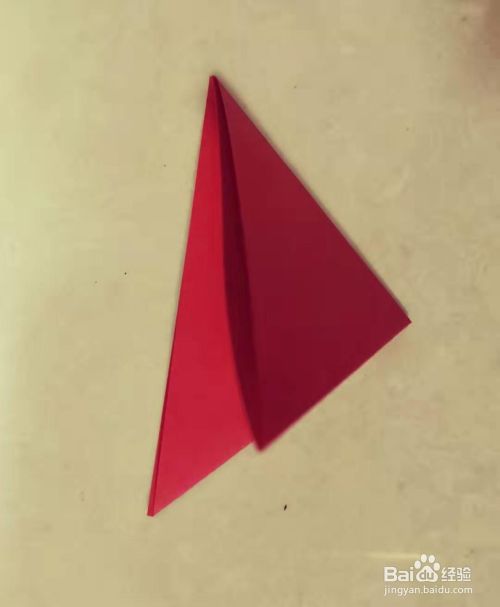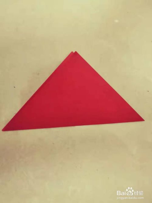 取一张正方形的红色彩纸,延对角对折,得到一个三角形;
