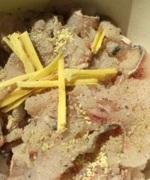 将盐,鸡精,研磨白胡椒粉,料酒,生姜丝倒入鱼片中,搅拌均匀,腌制10分钟。