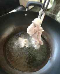 油热后,夹入鱼片,放之前尽量把多余的干粉抖干净。