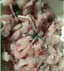 花鲢鱼身请店家帮忙片成薄片,薄些才酥脆哦!洗净,晾干水份,着急就用手轻轻挤干也可以。