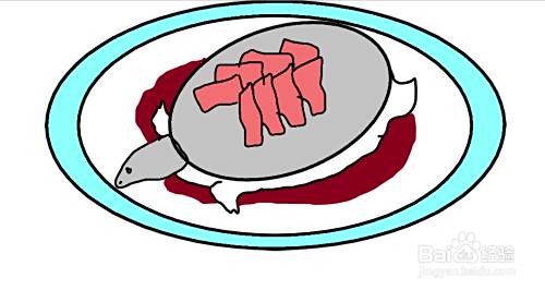 最后甲鱼用灰色涂上颜色,汤底用暗红色涂上就完成了。