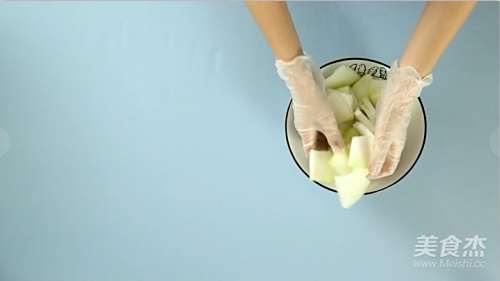 4将冬瓜片用少许盐,腌制一下;