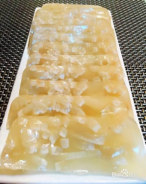 取出成型的皮冻,切片后加入醋、葱丝或自己喜欢的调味料即可食用