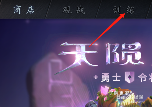 打开DOTA2,进入游戏界面后点击上方的训练菜单;