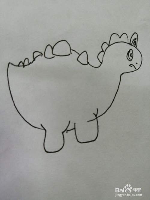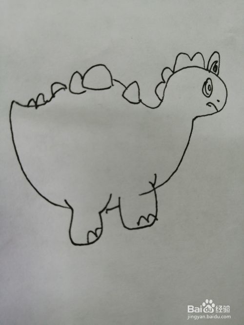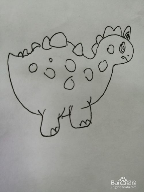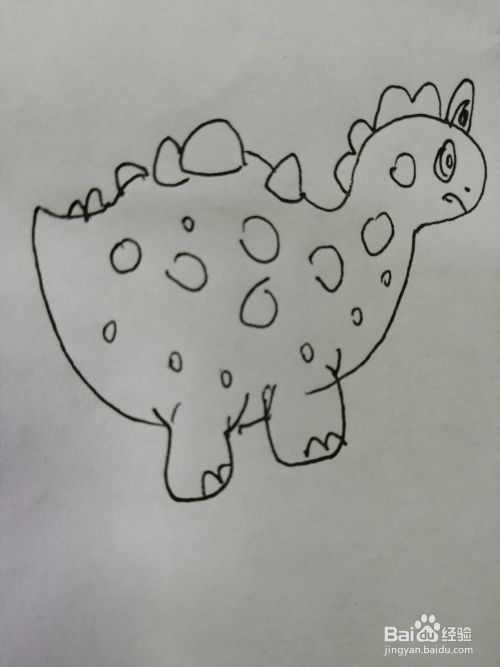 第七步,最后在可爱的小恐龙的身上画出大小不一的小圆圈。简笔画简单的小恐龙就画好了。