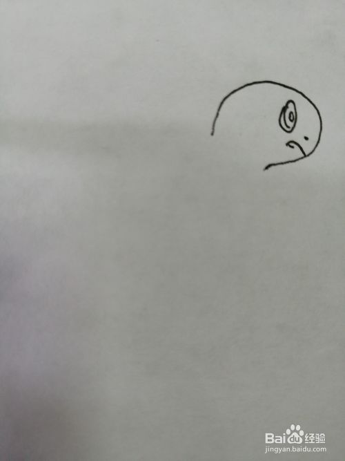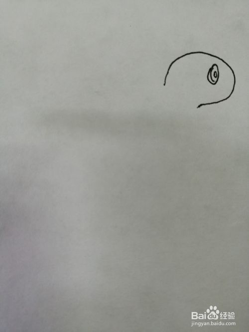 第二步,接着在小恐龙的头部里面画出一个大大的眼睛和小嘴巴。