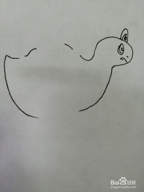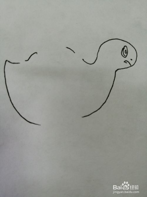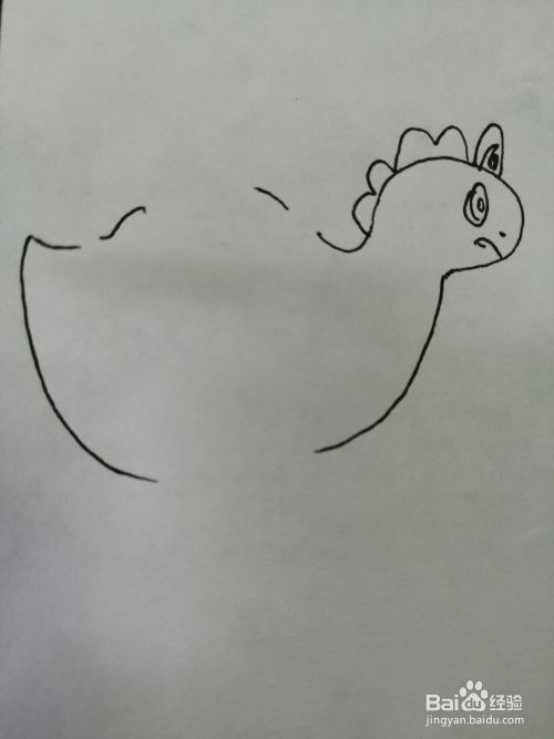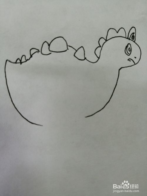 第三步,接着在可爱的小恐龙的头部下面画出一个胖胖的身体。