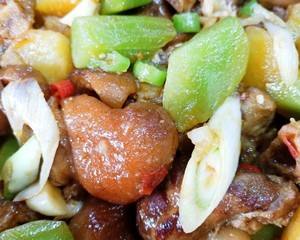 锅里放油,放入冰糖小火熬成糖色加入姜片猪脚翻炒,翻炒大概快一分钟时加入料酒去腥,然后放人八角桂皮香叶干辣椒继续翻炒,在加入豆瓣酱,翻炒几下加入清水,放盐,蚝油,老抽,烧开加入整个大蒜和大葱烧开然后放入电压力锅