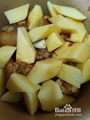 先放肉,上面放上准备好多土豆,然后把汤汁倒土豆上面,电压力锅15分钟后开盖