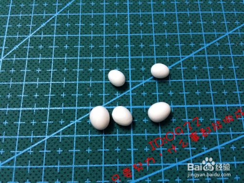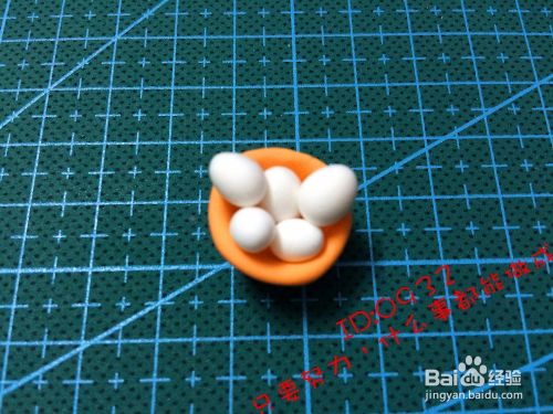 取出白色的粘土做出几个小鸡蛋,方到粘窝上,如图