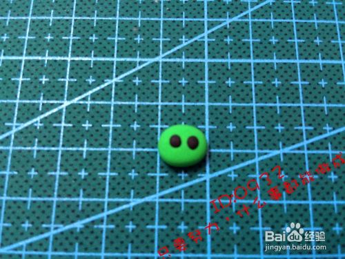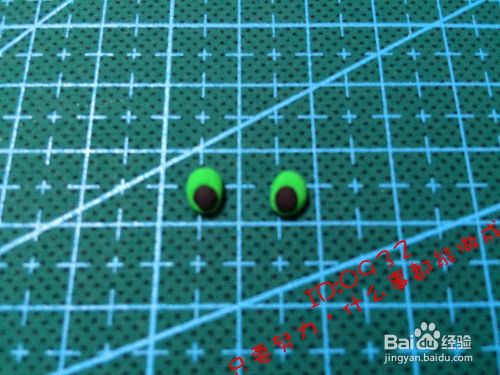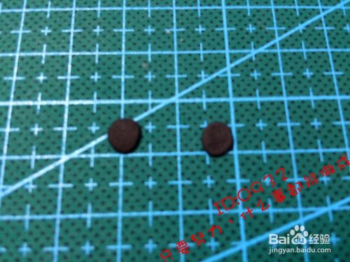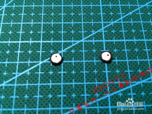 做出一对眼睛(底部黑色圆,上面小一圈的白色圆,中间粘一点),如图