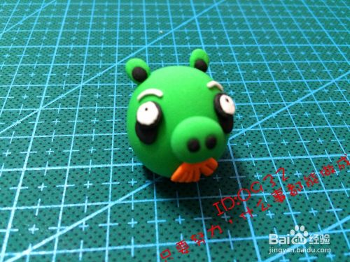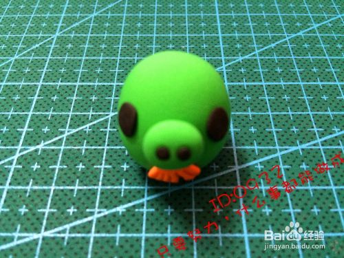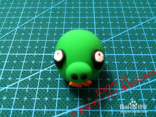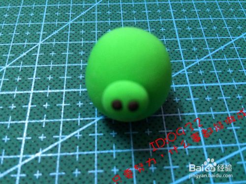 捏出一个鸡蛋型中间粘两个黑色的小圆点的鼻子,粘到中间的小下方,如图
